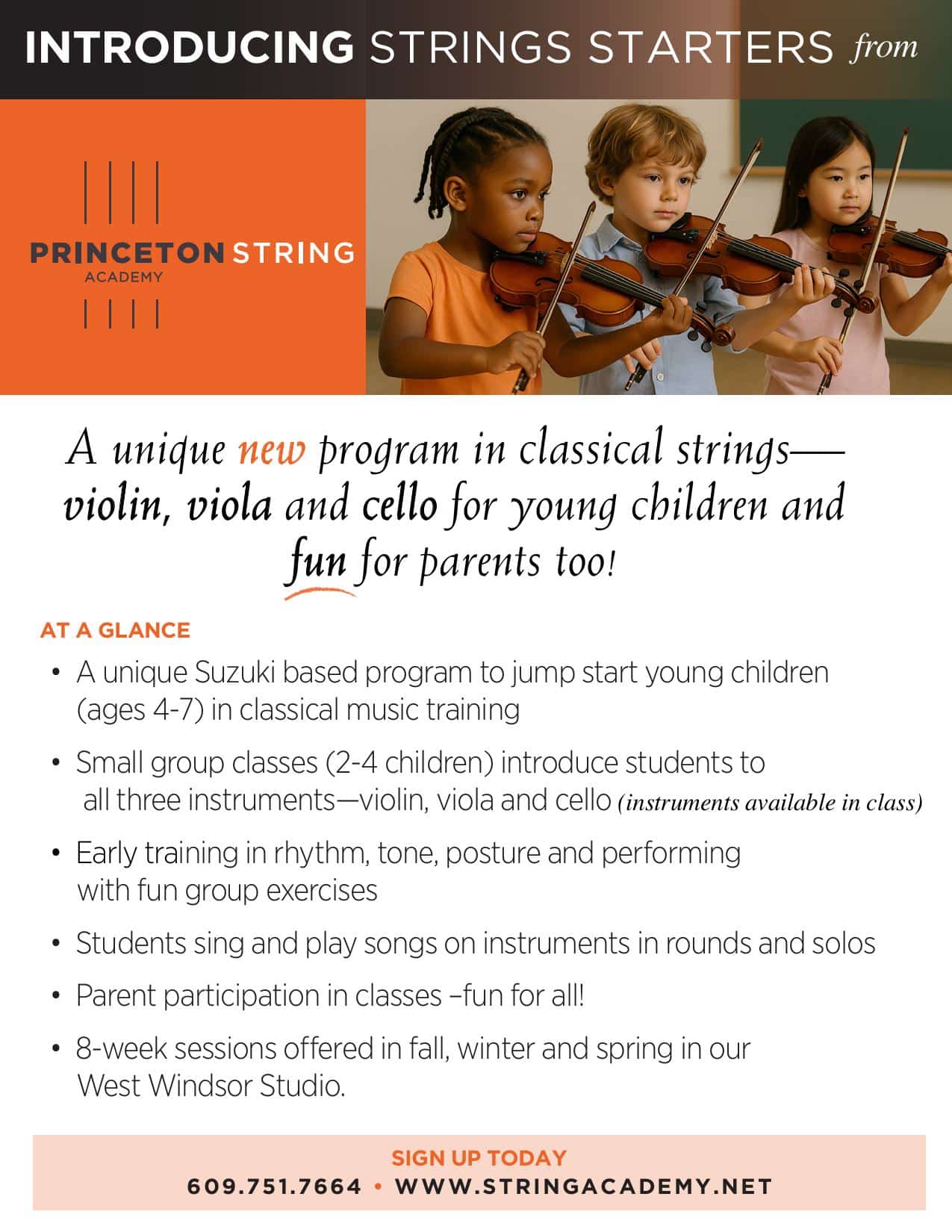 The Princeton String Academy offers lessons in private and group settings using the Suzuki Method of Talent Education.